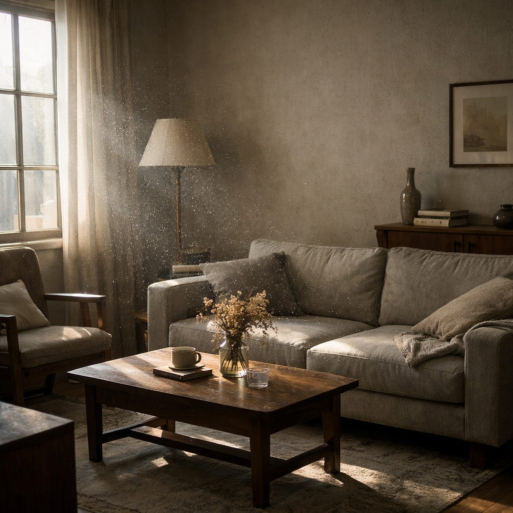 El polvo empieza a caer cuando una deja de mover las cosas. No de golpe. Célula a célula se acomoda entre el aire que entra por la ventana y la piel que se desprende de una. Es gradual. Es una película casi invisible que se posa sobre las superficies. En la mesa, en los libros, en el respaldo del sillón. Nadie entra a ensuciar; nadie entra a desordenar; nadie entra a mover. Nadie entra, punto.